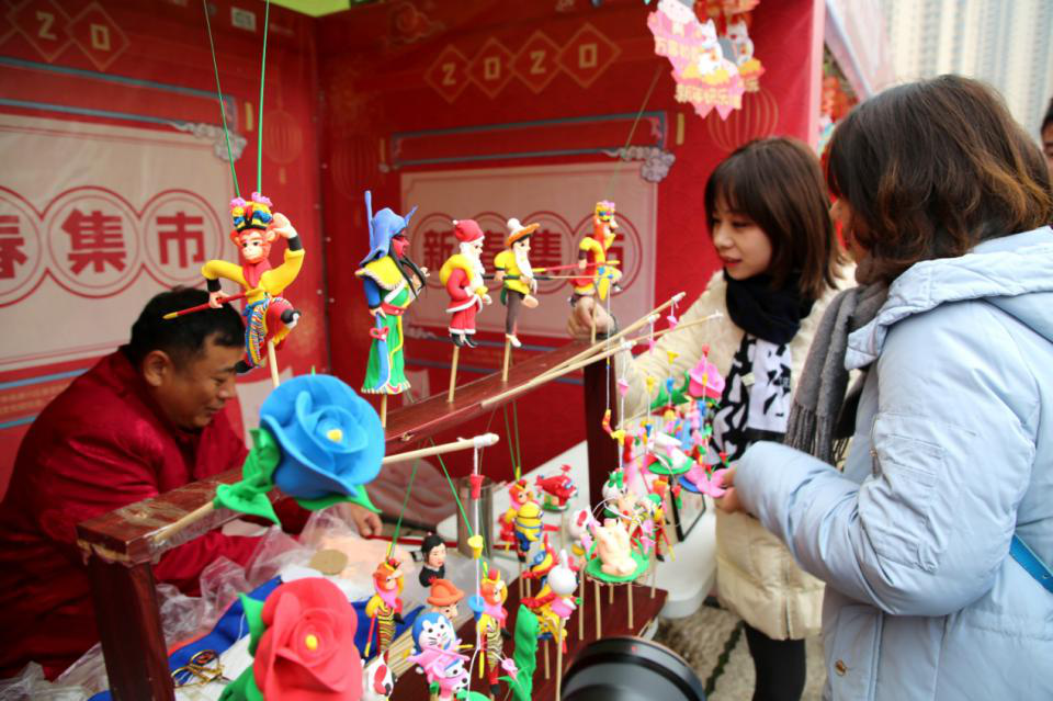 集市上呈现浓郁新年氛围,迎新的温暖和惬意油然而生,泥人摊位前手工艺人以老鼠为原型,通过艺术表现方式,制作出形态各异的金鼠。新春集市不仅搭建了一个扩大消费需求、活跃节日市场的平台,更是让市民在逛集市、赏年俗、购年货的过程中,近距离体验了传统文化的魅力和浓浓的年味。